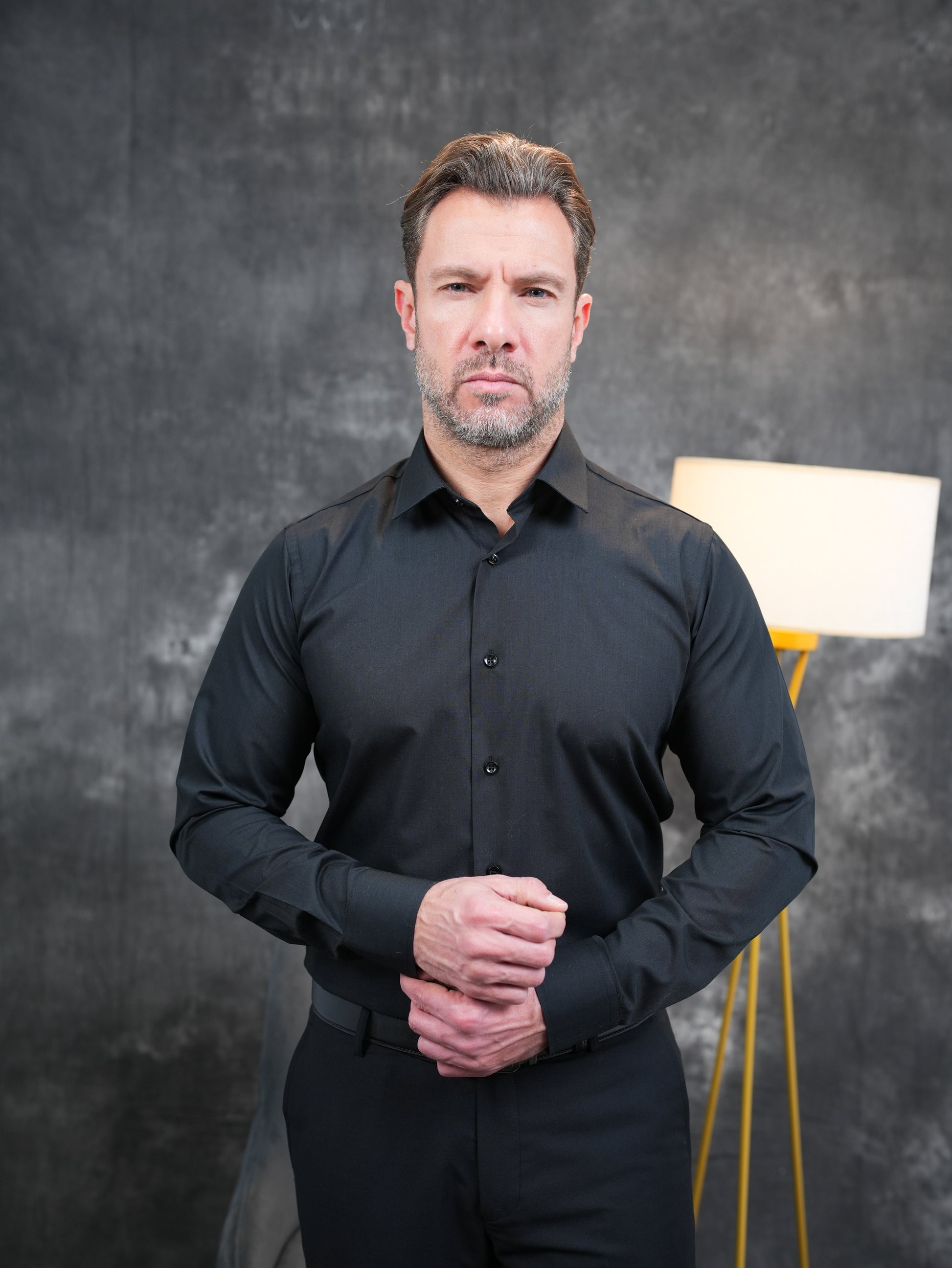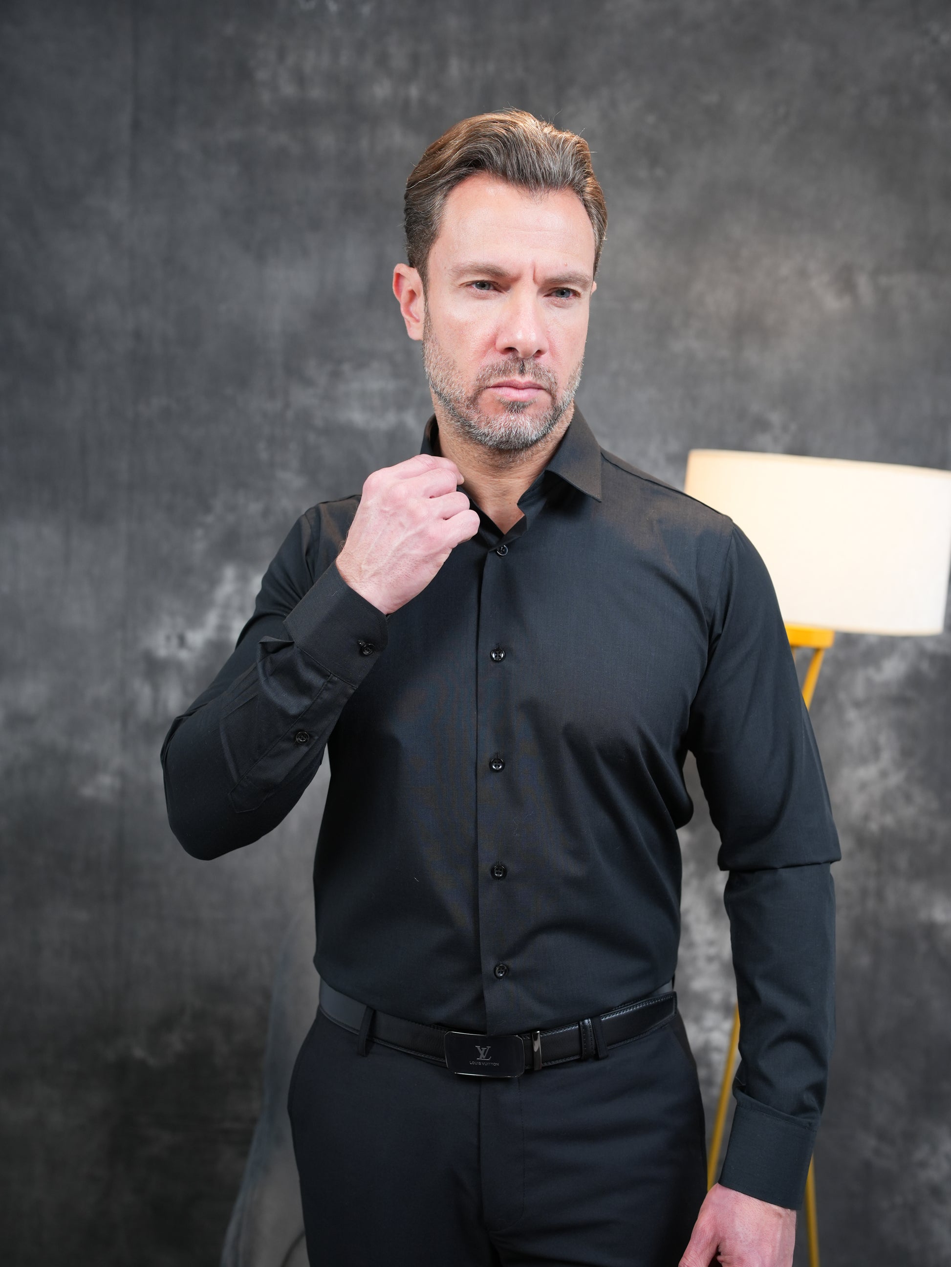 قميص رجالي أسود بقصّة "سليم فيت" - أنيق، متعدد الاستخدامات، خالد.